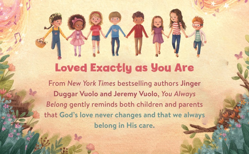 Is your child striving for perfection or seeking the approval of others? You AlwaysBelong, inspired by the bestselling nonfiction book People Pleaser, is a beautiful book that helps children understand their worth isn’t based on pleasing others or being perfect. Written by New York Times bestselling author Jinger Duggar Vuolo and Jeremy Vuolo, this book gently explores how God loves us unconditionally, how we always belong in his love, and how it’s OK to have boundaries and even to say no sometimes.