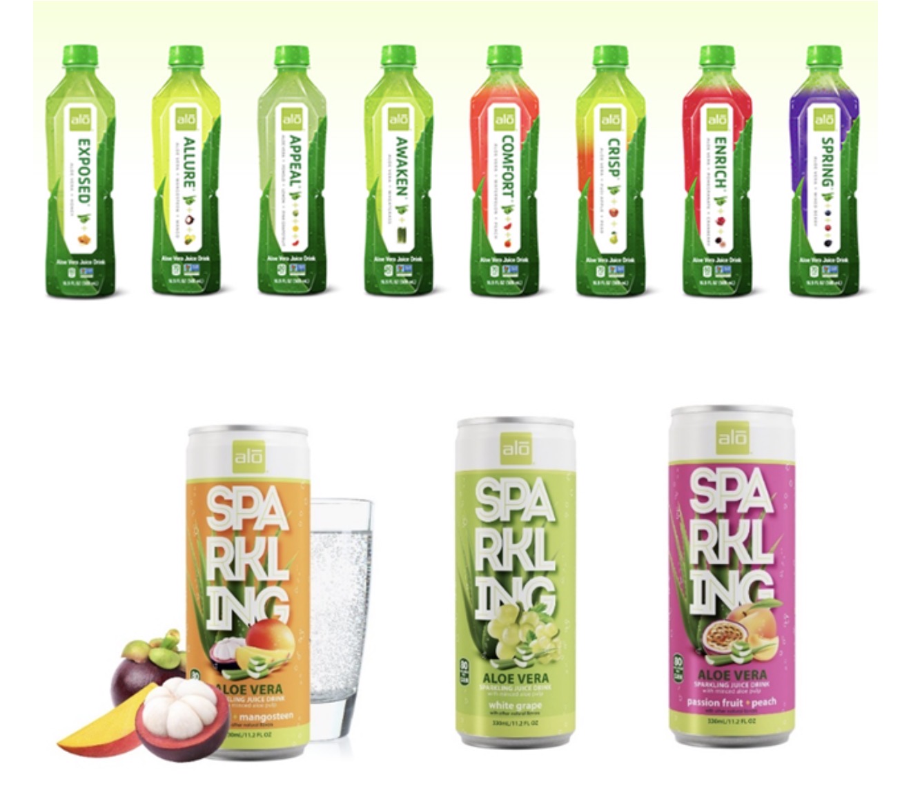 ALO’s Original line is available in such tantalizing varieties as Exposed (Original with Honey), Allure (Mango & Mangosteen), Comfort (Watermelon & Peach), Crisp (Fuji Apple & Pear), Appeal (Pomelo, Grapefruit, Lemon), Awaken (Wheatgrass), Enrich (Pomegranante & Cranberry), Spring (Mixed Berry), Blush (Strawberry) and Blue (Blueberry).