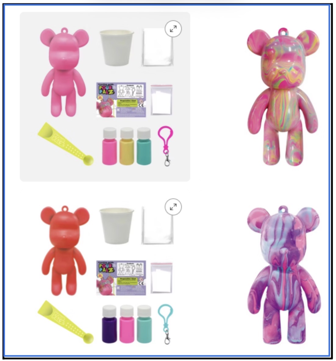 A creative Easter basket win under $5! Kids can swirl and pour paint to create mesmerizing marbled designs on their own mini bear keychain. Craft + collectible = a fun alternative to candy.