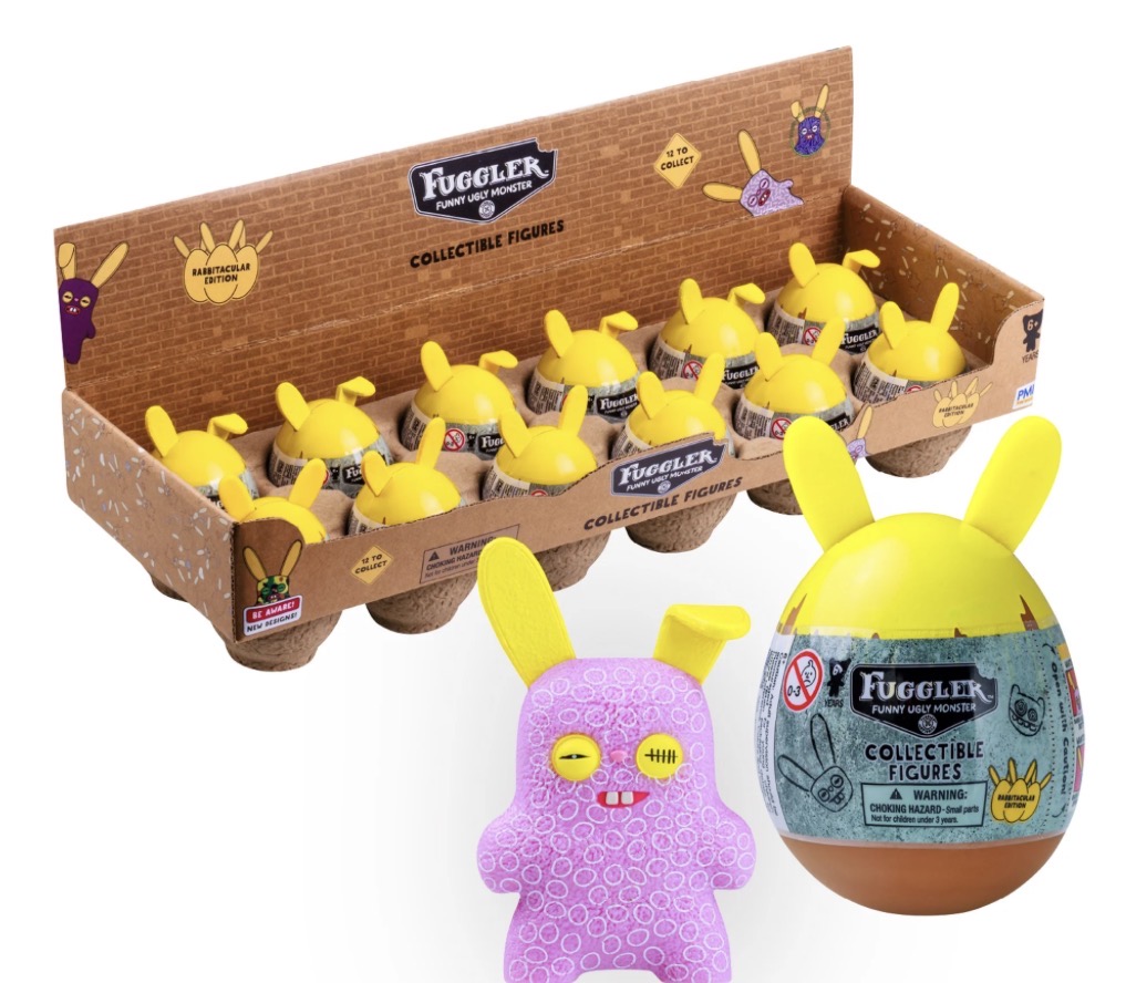 Each bunny-eared egg reveals one of 12 mischievous Rabbid Rabbit Fugglers. Quirky expressions, oddball charm, and perfect basket-ready pricing make these a playful twist on traditional Easter eggs.